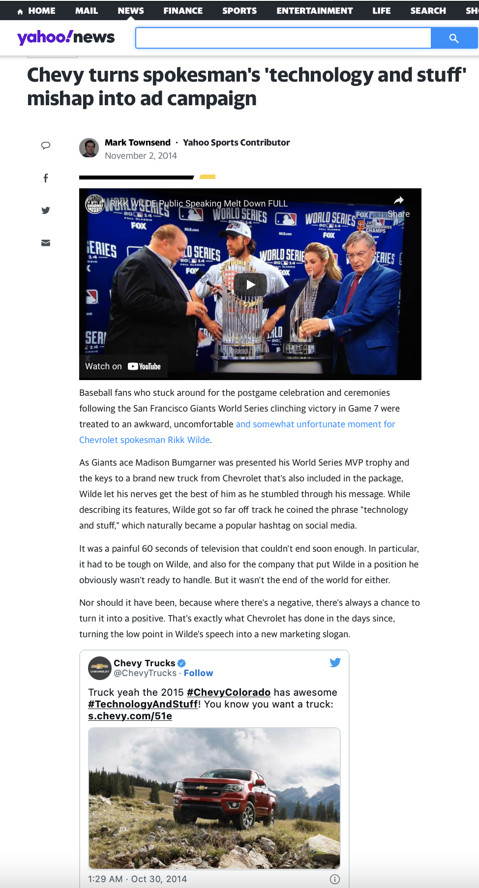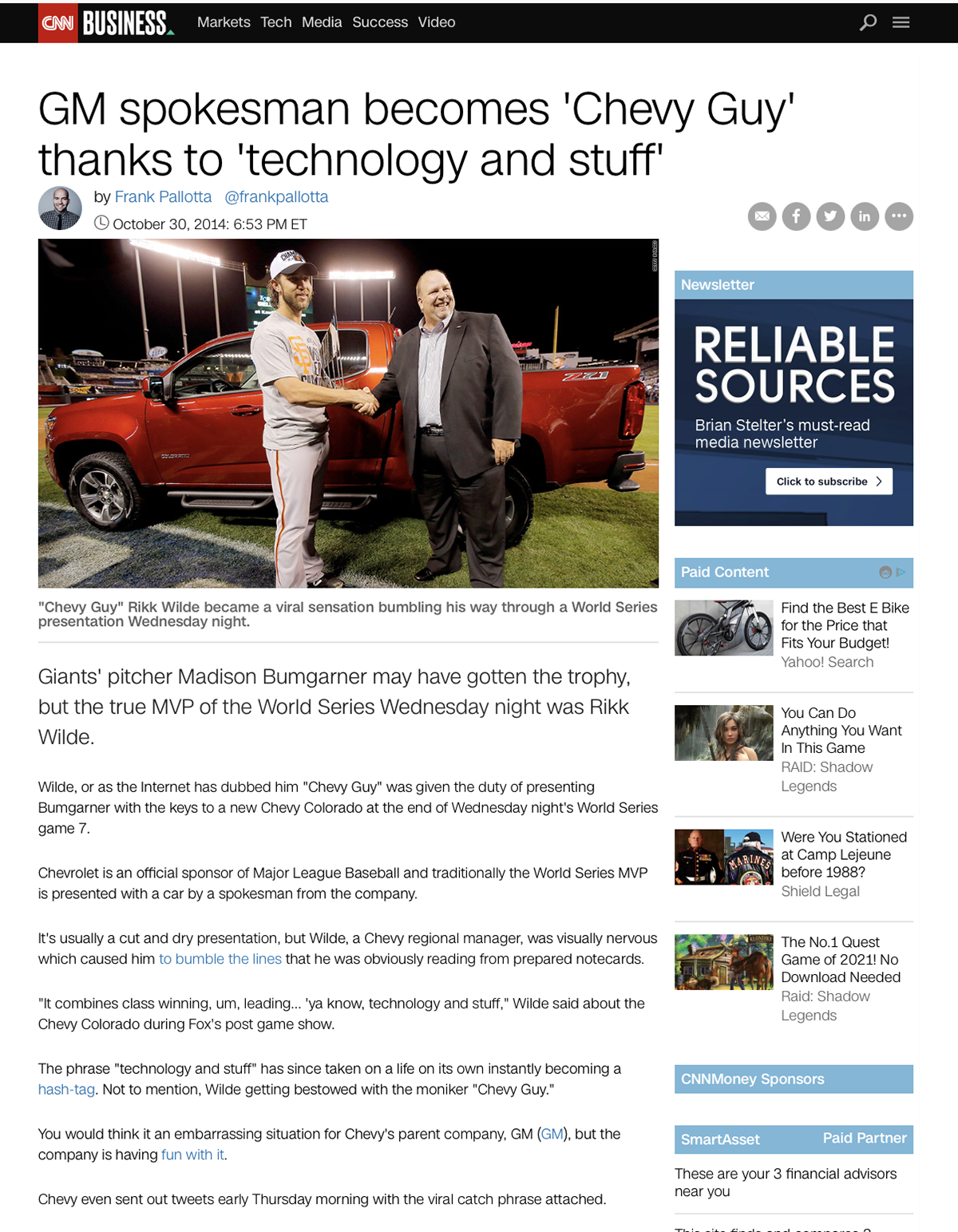 When a nervous Chevy Zone Manager fumbled through the World Series MVP presentation, we had a decision to make, run from the PR nightmare, or, embrace it.